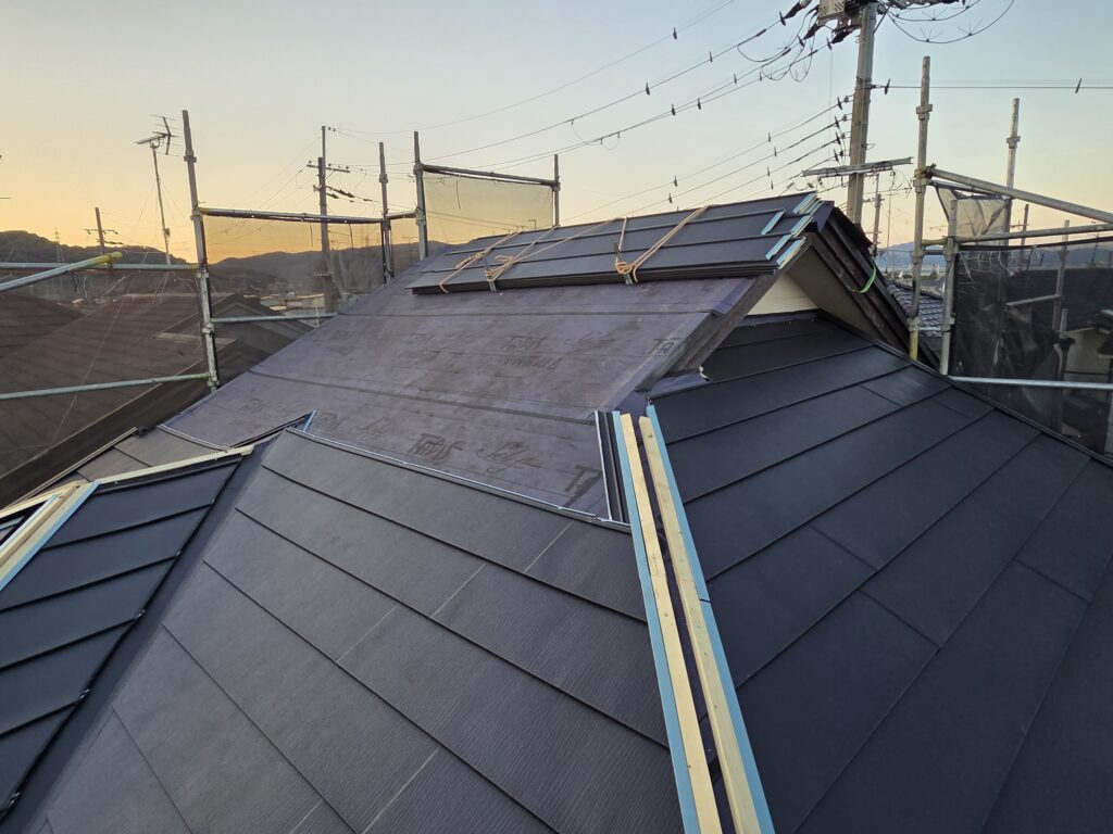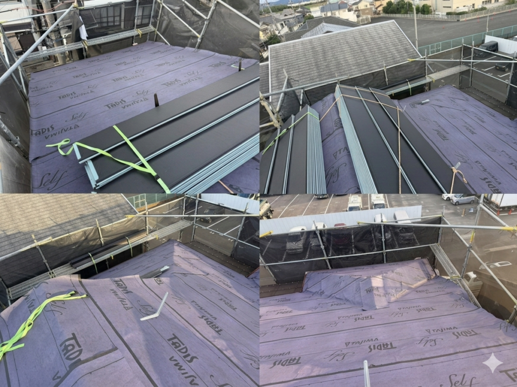 簡単にまとめると、既存のカラーベストの上から金属系の屋根材を貼ることです。